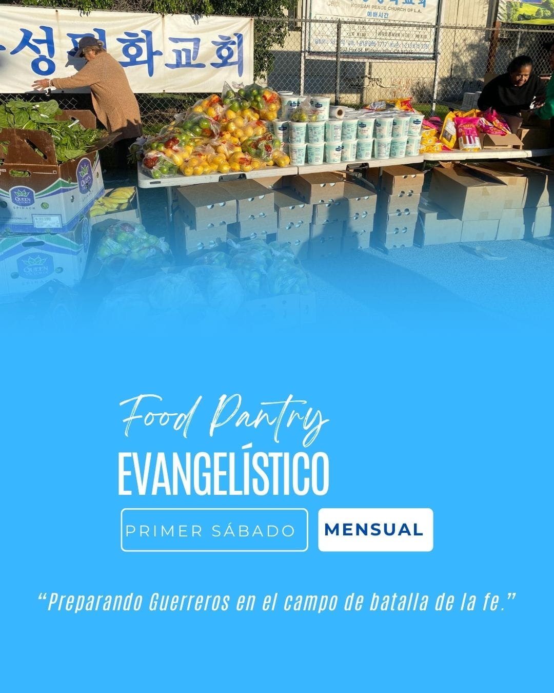Cada primer sábado del mes a las 9:00 AM llevamos esperanza a la comunidad a través de nuestro Food Pantry Evangelístico, compartiendo provisión y amor de Dios.
